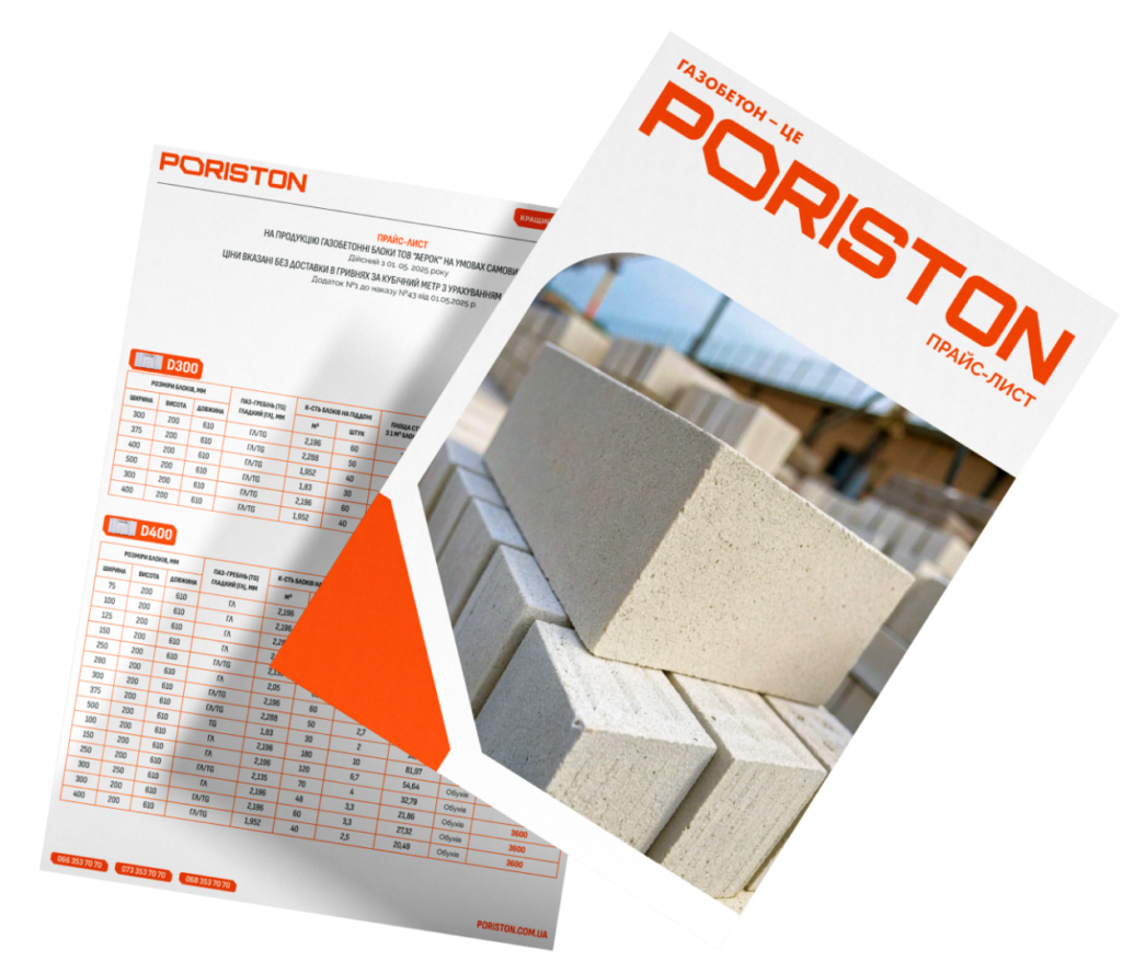 У PORISTON ми прагнемо, щоб якісні та надійні будівельні матеріали були доступні кожному. Тому ми формуємо максимально чесну та вигідну для вас ціну на газобетонну продукцію. Це більше, ніж просто вартість блоків — це вигідна інвестиція у тепло, міцність та енергоефективність вашого майбутнього дому.